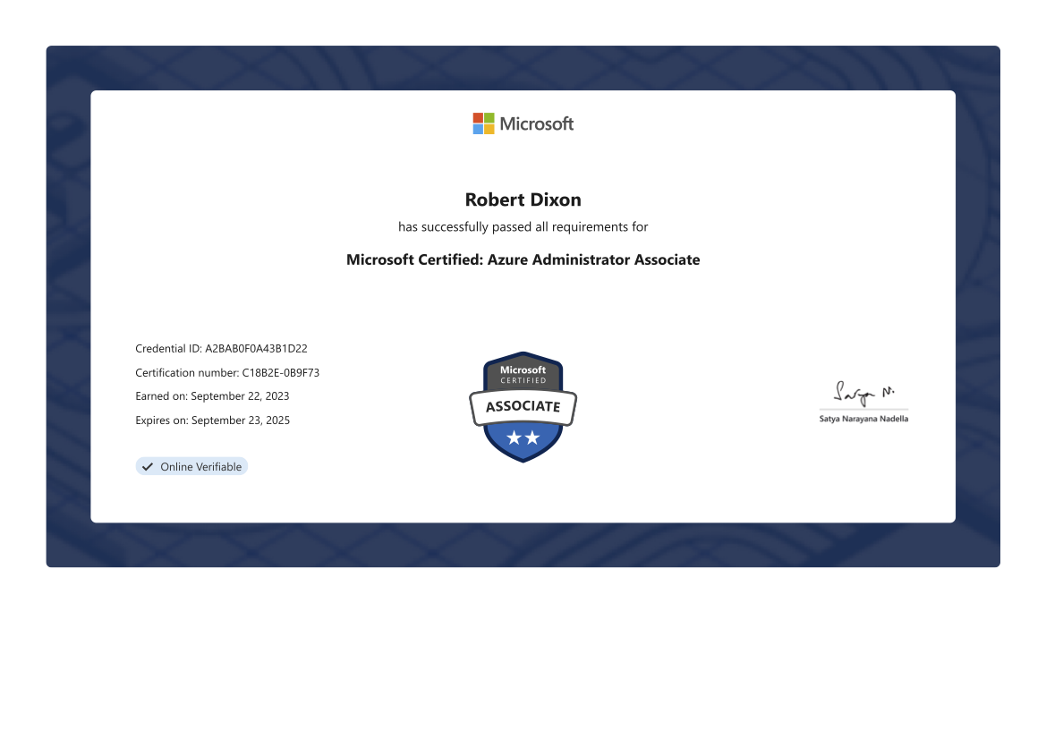 Throughout my career, I have achieved several industry-recognised certifications, demonstrating my expertise and commitment to continuous learning in various technical domains.