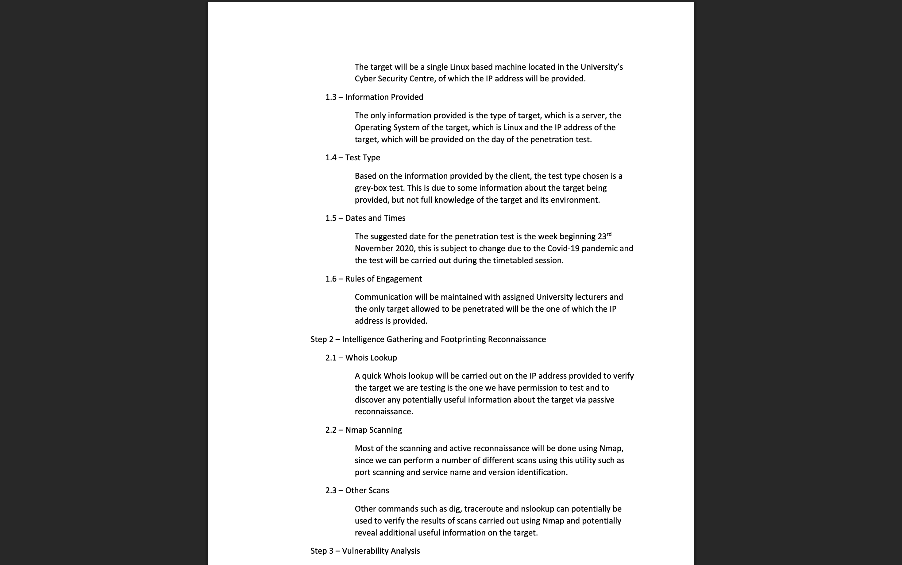 Additionally produced a report, covering the main attack narative and vulnerability mitigations, backed up by research.