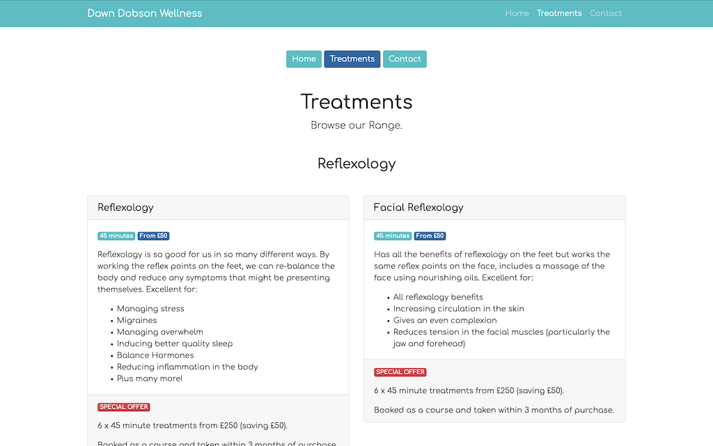 A static website for a massage therapist.
