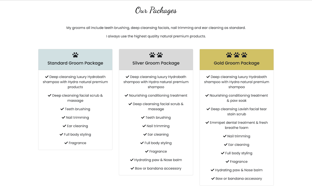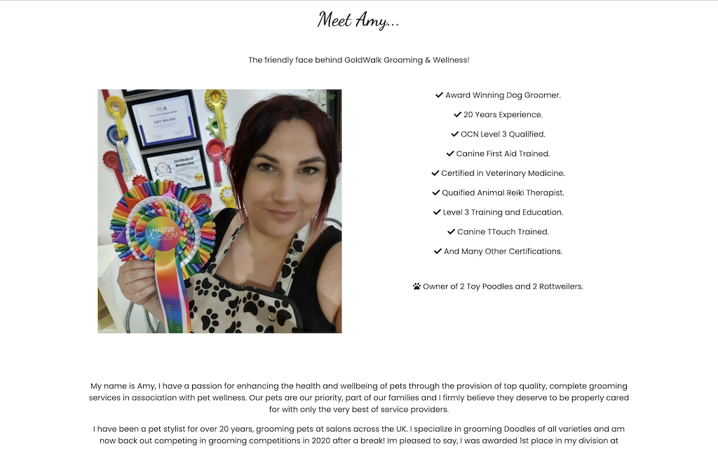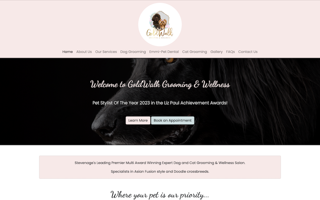 A static website for a pet groomers.
