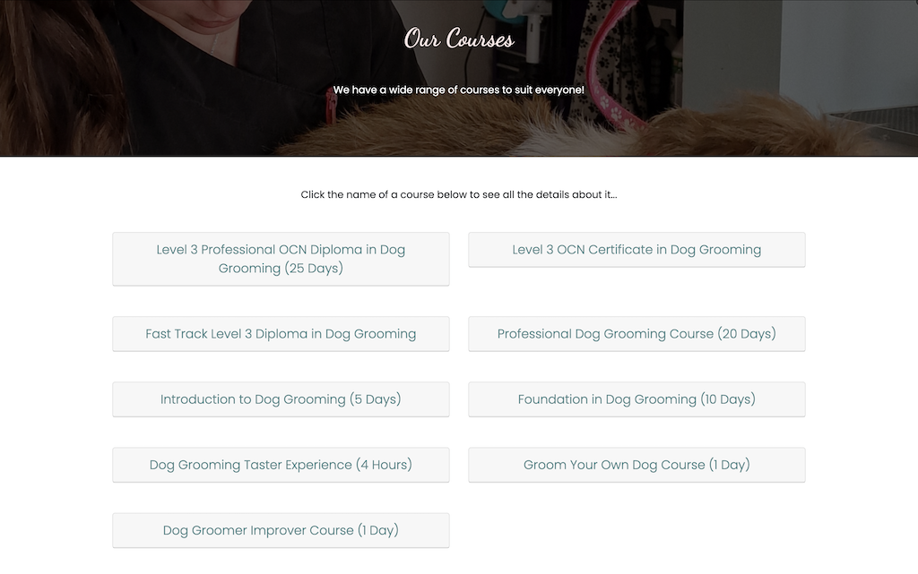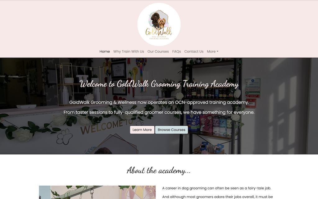 A static website for a pet grooming training academy.