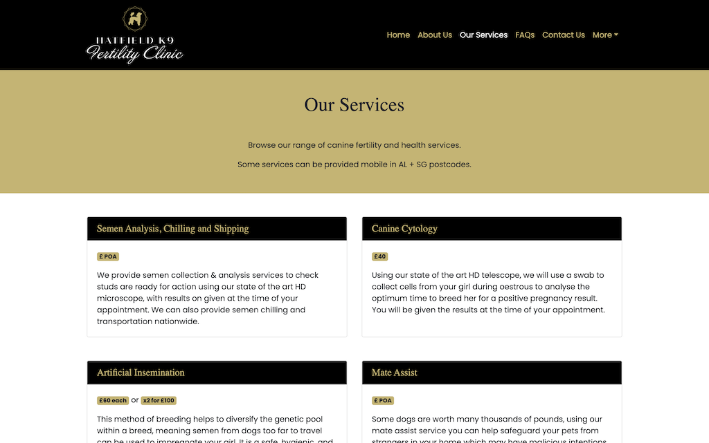 A static website for a canine fertility service.