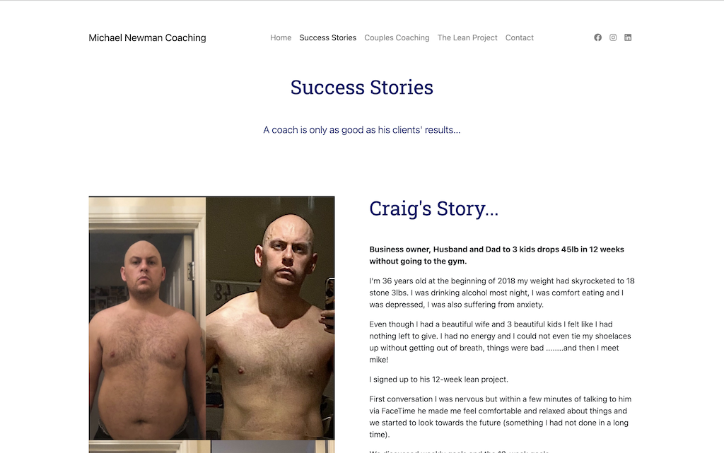 A static website for a personal trainer.