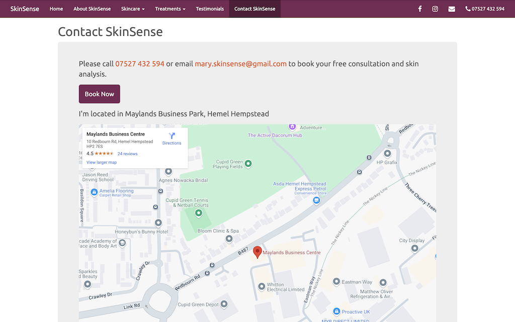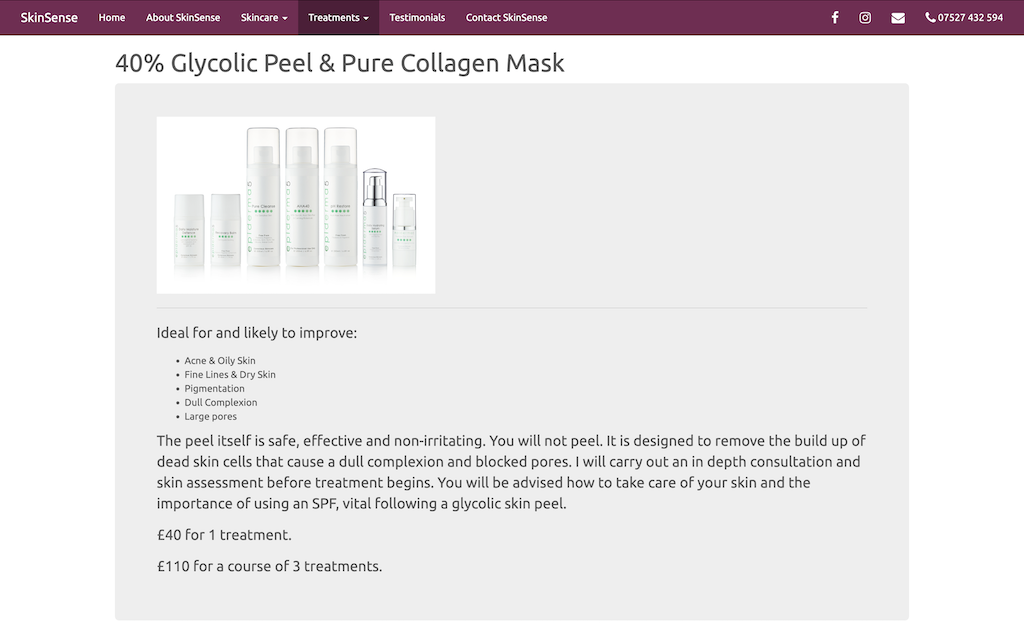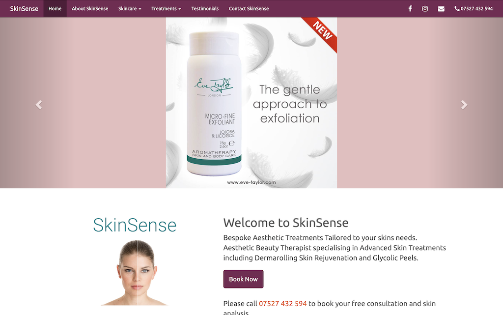 A static website for a skin and beauty specialist.