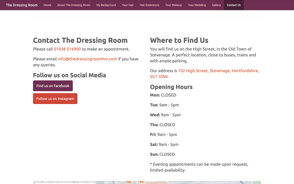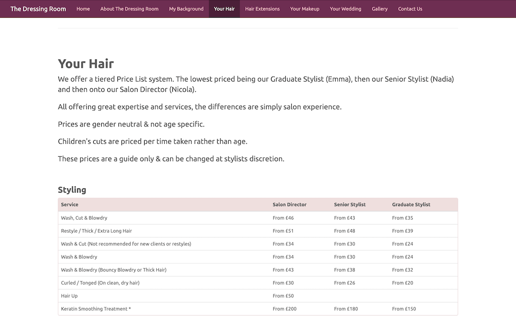 A static website for a hair and makeup salon.