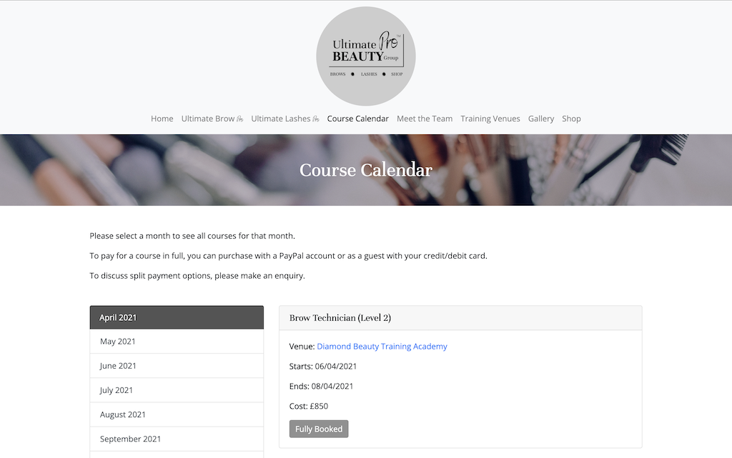 A static website for a beauty training specislist.